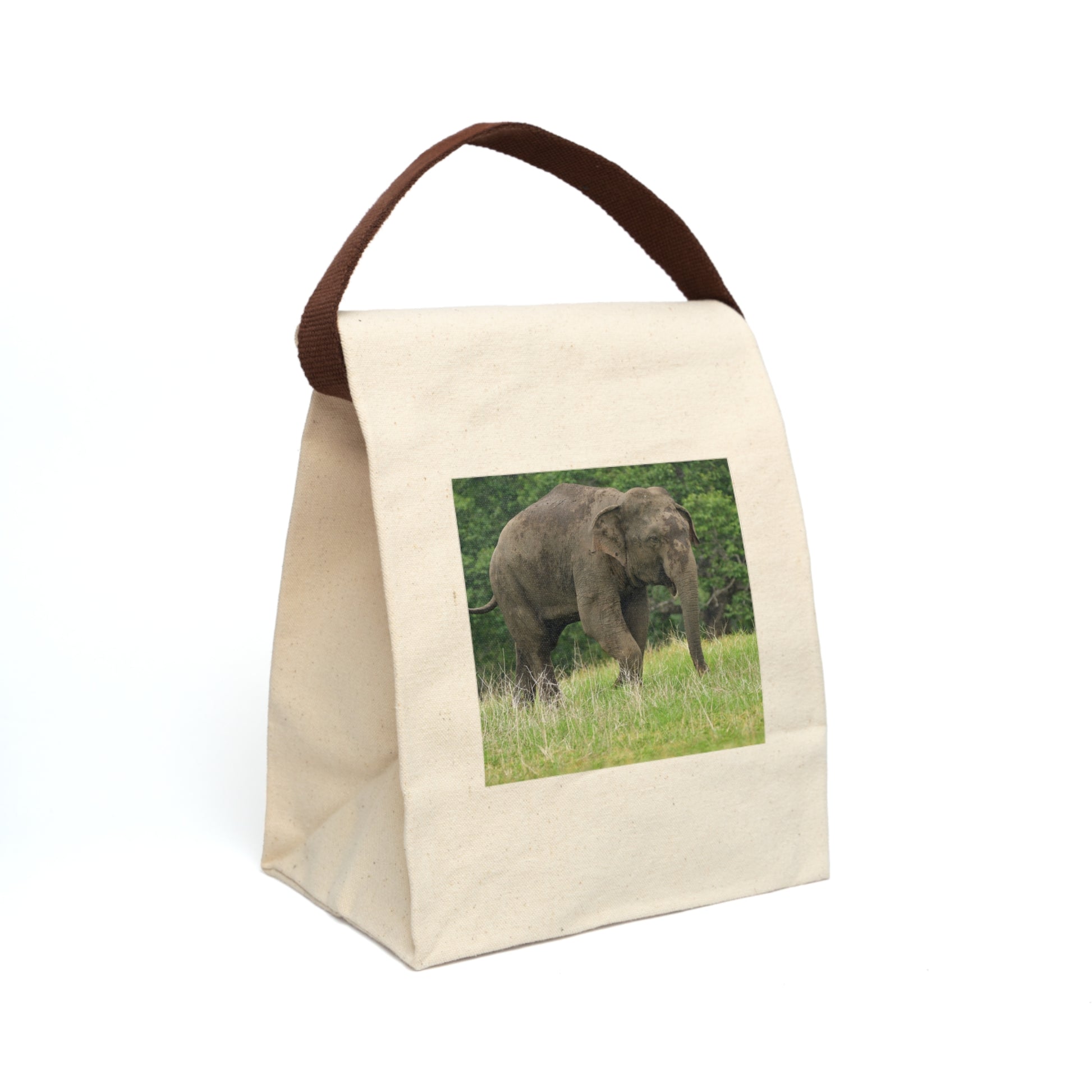 Reusable Canvas Lunch Bag with Elephant Print, Eco Cotton Lunch Tote for Work, School & Picnics | Sustainable Gift Idea
